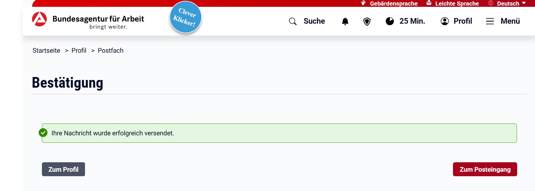 4. Sie haben Ihre Nachricht erfolgreich an das Jobcenter übermittelt und können diese jederzeit im Leistungspostfach einsehen.