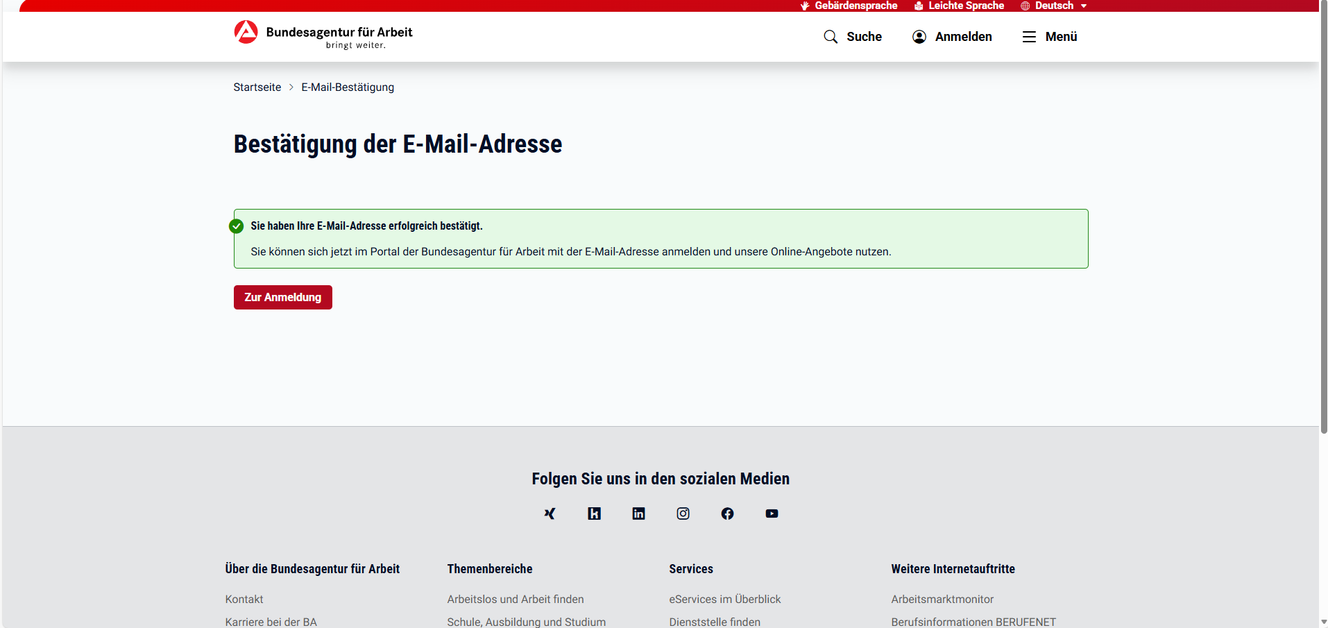 → Bei erfolgreicher Registrierung erhalten Sie jetzt eine E-Mail von der Bundesagentur für Arbeit.