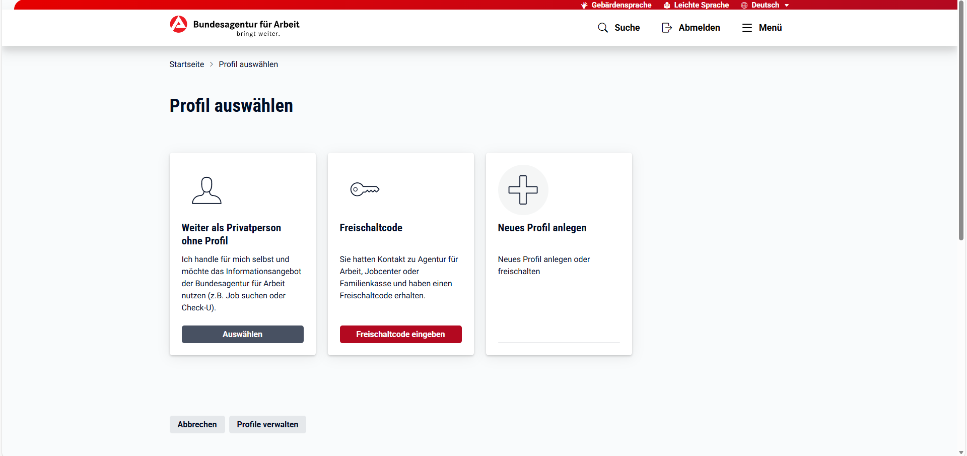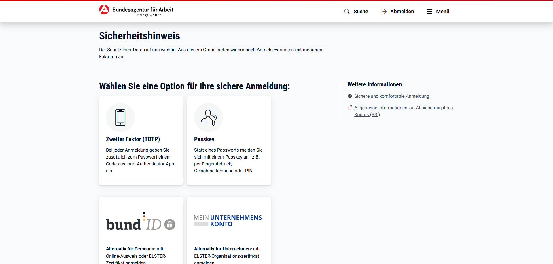 2. Wählen Sie aus, ob Sie sich über die BundID oder über das Konto der Bundesagentur für Arbeit registrieren wollen.